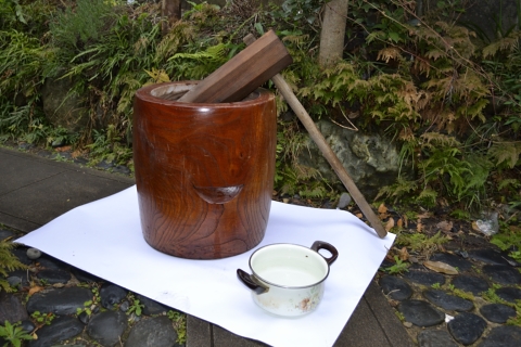これがニンジャム家のマイ臼&マイ杵&マイ鍋&マイお湯。