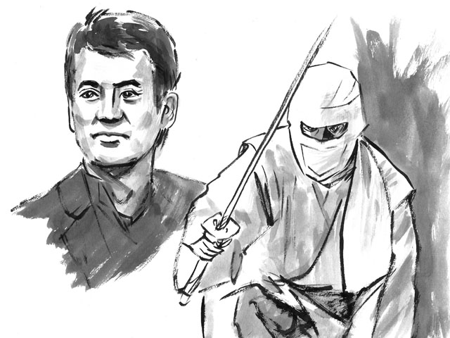 この日の撮影には100人の忍者を含め、キャスト・スタッフ総勢約170人が集結し、スタジオに組まれた本能寺のセットから伸びる高さ約8.5mのキャットウォークから唐沢さんが飛び降りるという危険なスタントと、飛び降り後、続けざまに100人の忍者を斬るという激しいアクションが行われた。